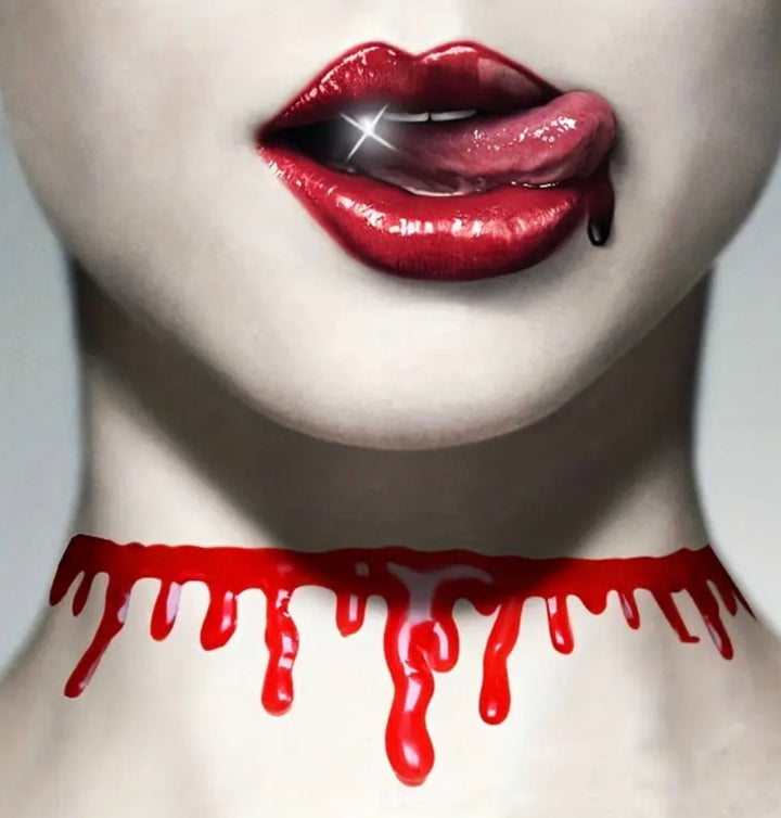 Su efecto sangre realista y textura suave de silicona lo hacen el accesorio perfecto para tu disfraz de vampira, zombie chic o chica de terror 😈💋