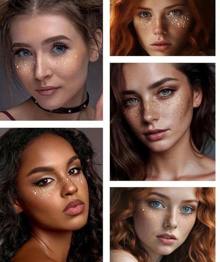 Dale un toque mágico y brillante a tu rostro con nuestras pecas doradas de tatuaje temporal ✨.