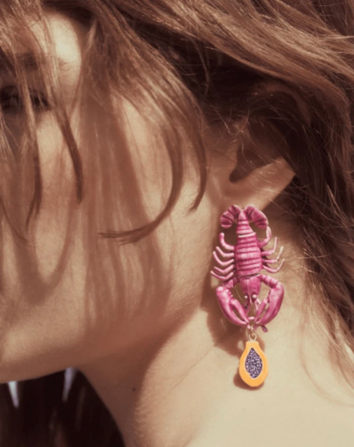 🦞Atrevidos, divertidos y fuera de lo común: así son los Escorpio Tropical, unos aretes que mezclan el mundo animal con un toque frutal inesperado. Con un escorpión fucsia de textura vibrante y un colgante de fruta estilo papaya, son el accesorio perfecto para quienes aman destacar y romper las reglas del estilo.