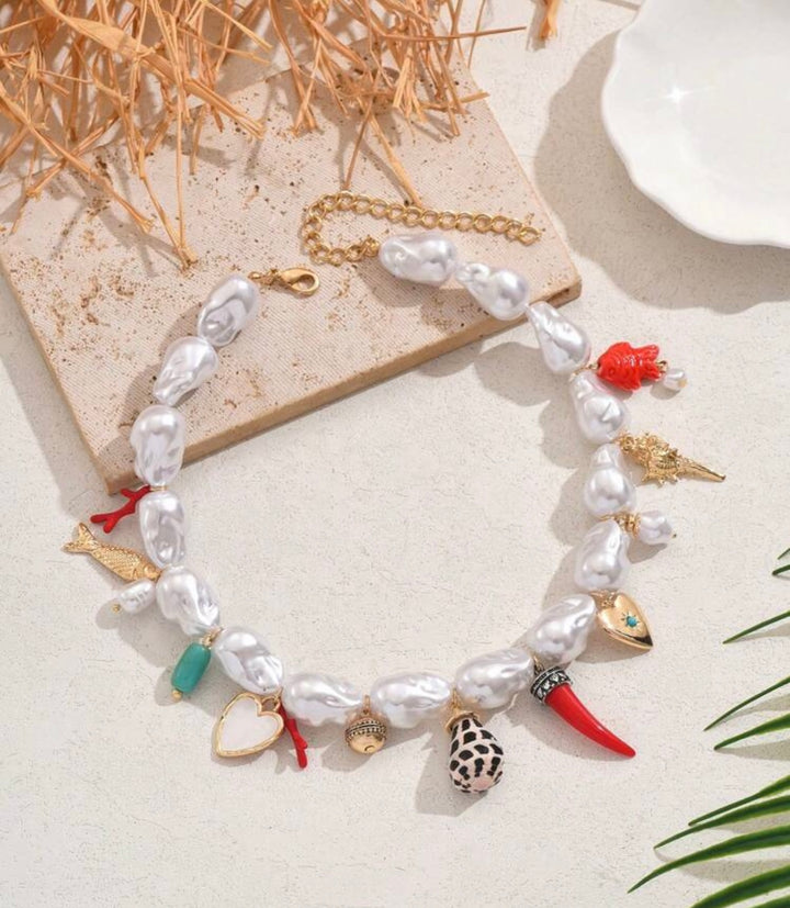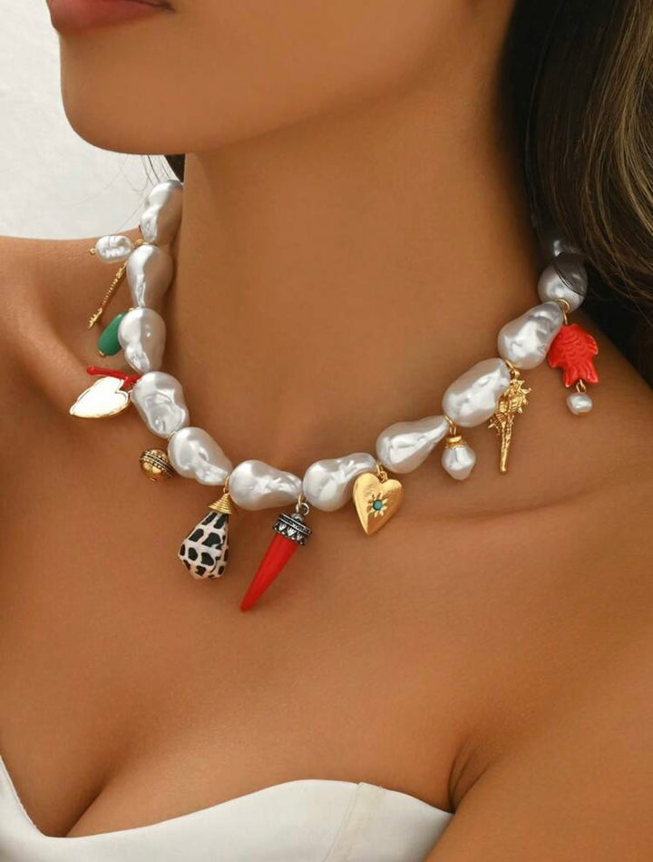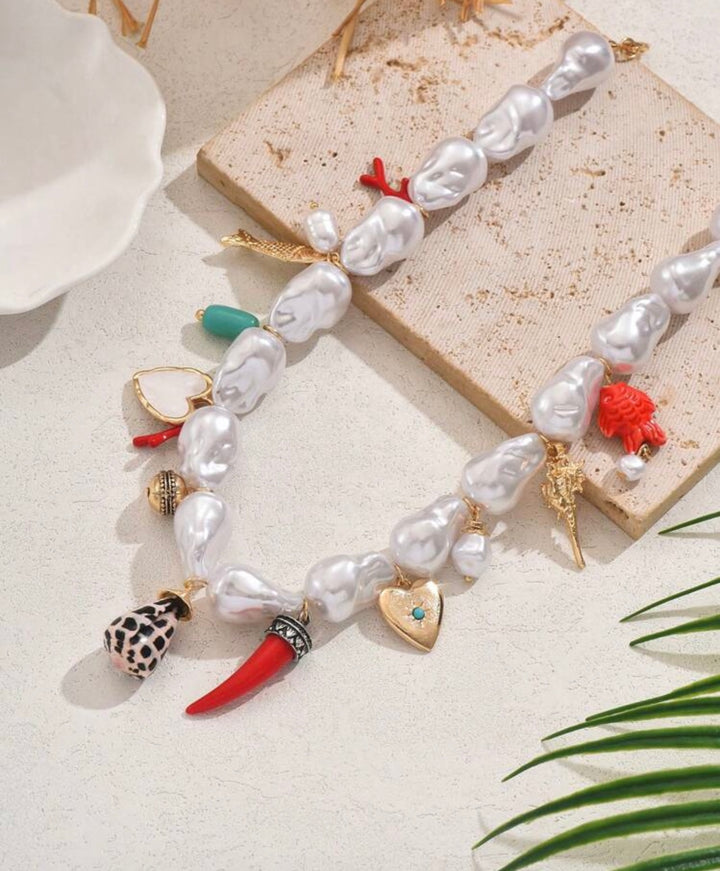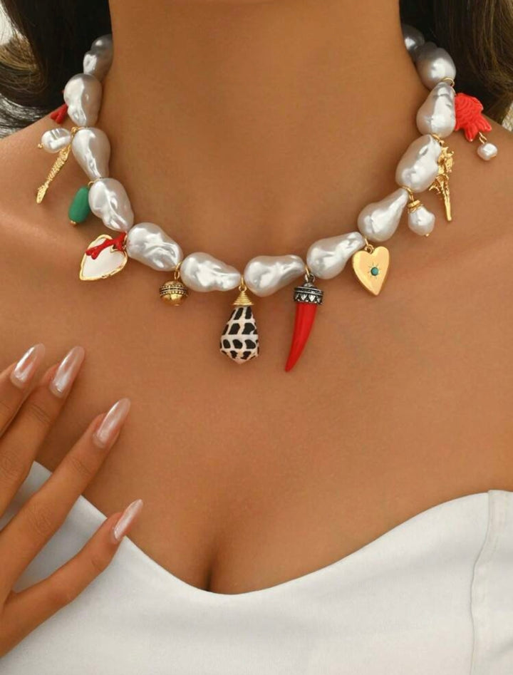 ✨Destaca tu estilo con este collar gargantilla de perlas barrocas y dijes coloridos.