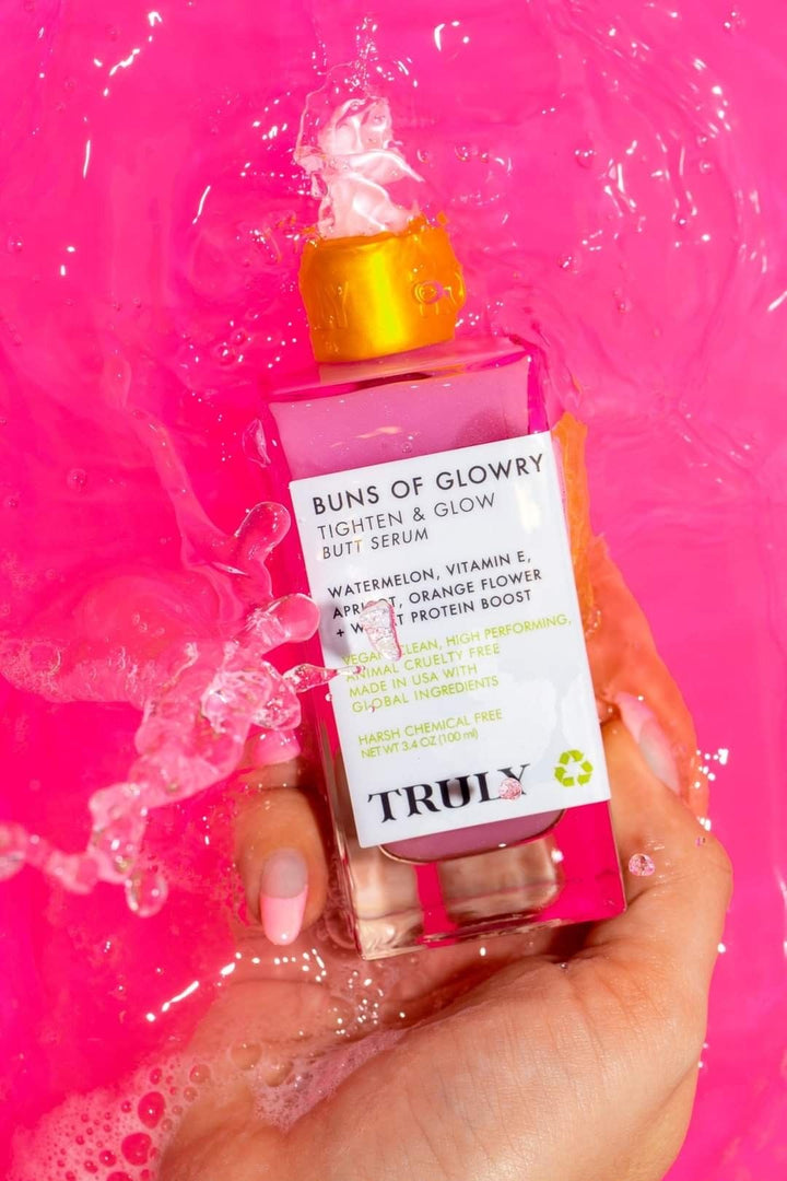 El Buns of Glowry Butt Serum de Truly es un suero reafirmante diseñado especialmente para dar a tus glúteos un aspecto más tonificado, suave y luminoso.