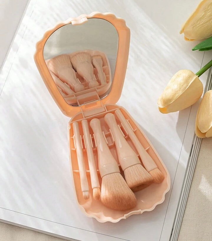 🐚Este adorable set incluye 5 brochas esenciales en tamaño mini, perfectas para retoques y looks completos estés donde estés.