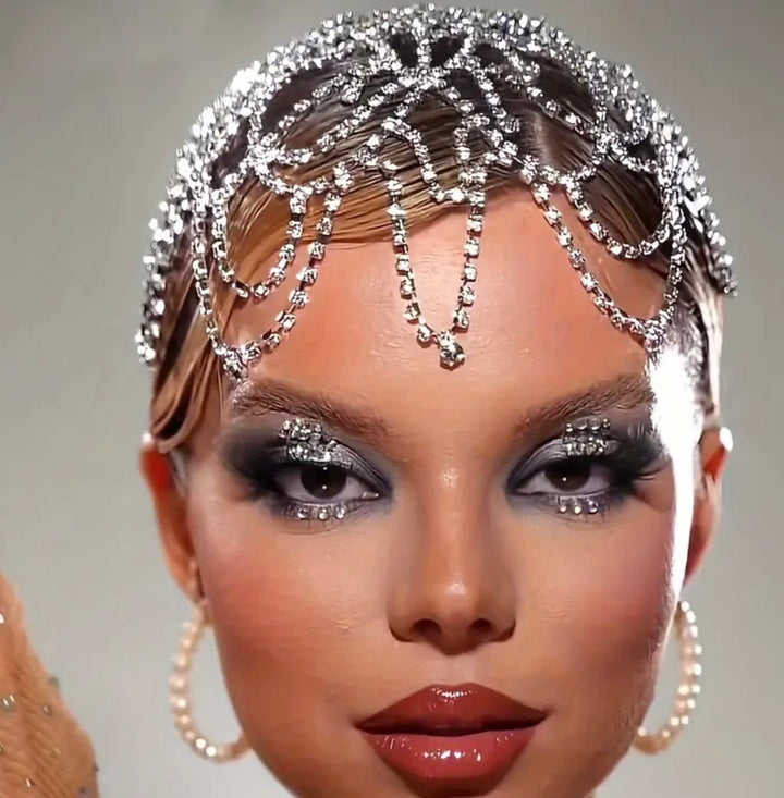 Deslumbra con este tocado de piedras estilo red, una pieza elegante y sofisticada que combina glamour y delicadeza.